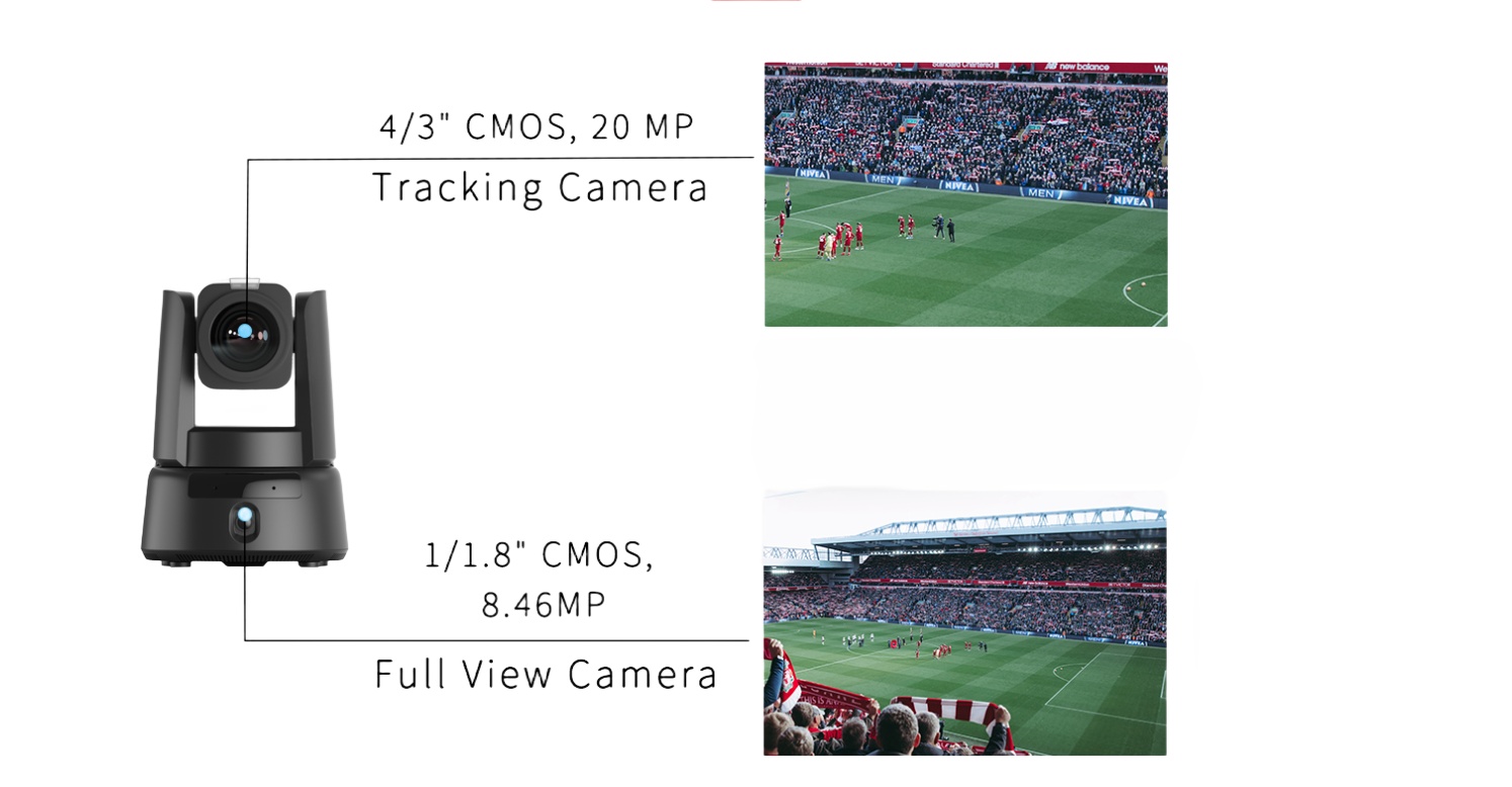 - Sensore CMOS di fascia alta da 4/3 pollici, lente zoom ottico 4K da 20x professionista con un HFOV massimo di 71â °